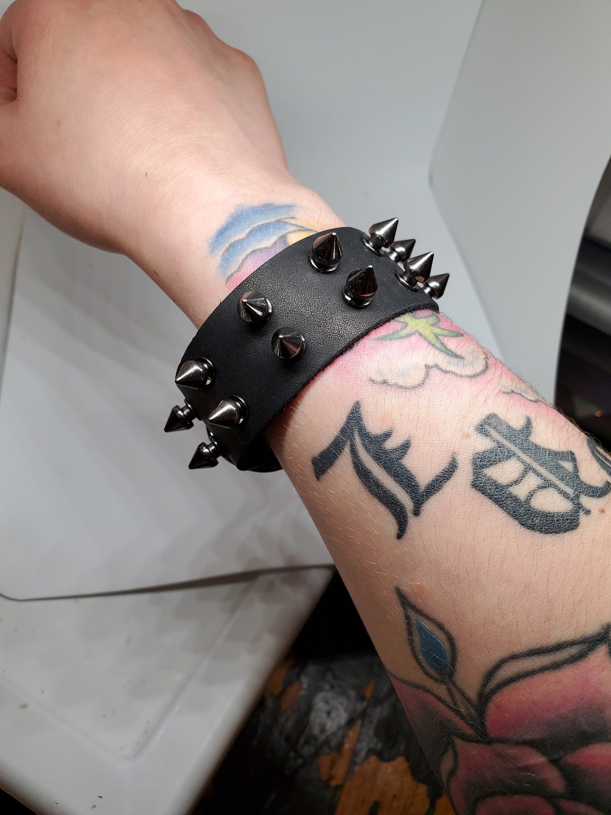 Punk up your look with a spiked Leather Wristband! These are adjustable and will best fit wrists that are 6-7 inches, and i can make these in other sizing if needed <3 Be sure to find me on insta to see more of my work! @_SxbjectDelta_