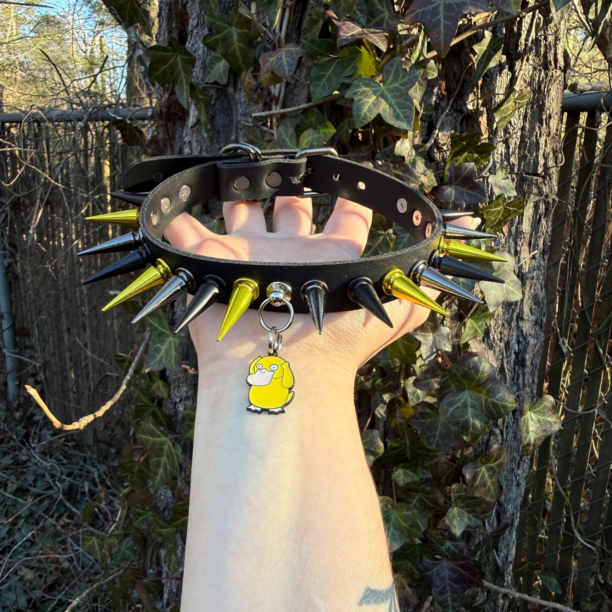 This is a choker I made on a 3/4” wide, vegan/faux leather and it features a super cute, enamel, Psyduck charm! I have a few other pokemon chokers available, so be sure to check them out! This choker is adjustable and will best fit necks that are 13-16 inches, although i can make other sizing if needed! Thank you for checking out my work, and i am happy to answer any questions!